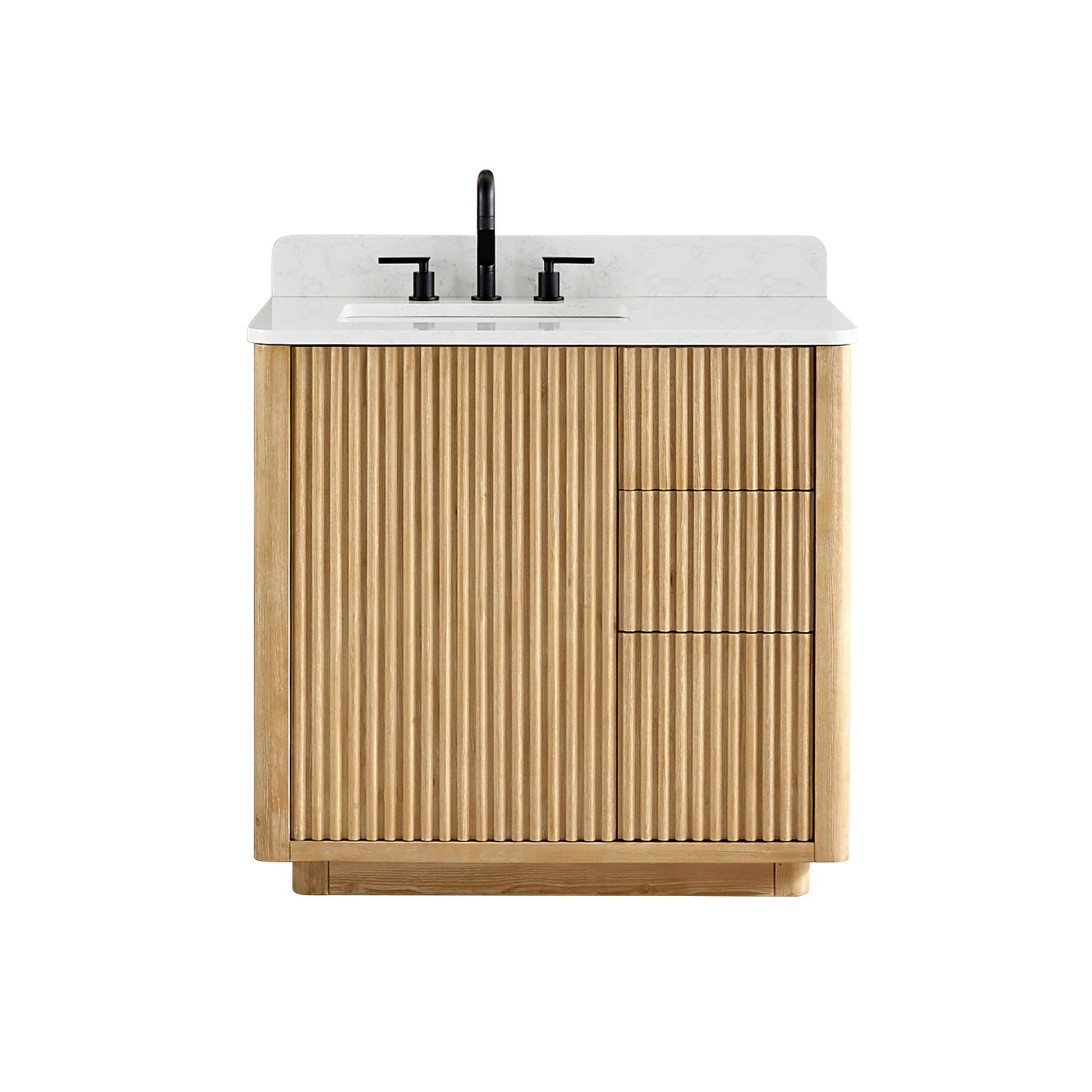 Clayton 36" Single Bathroom Vanity in Washed Light Brown with Grain White Engineered Stone Countertop