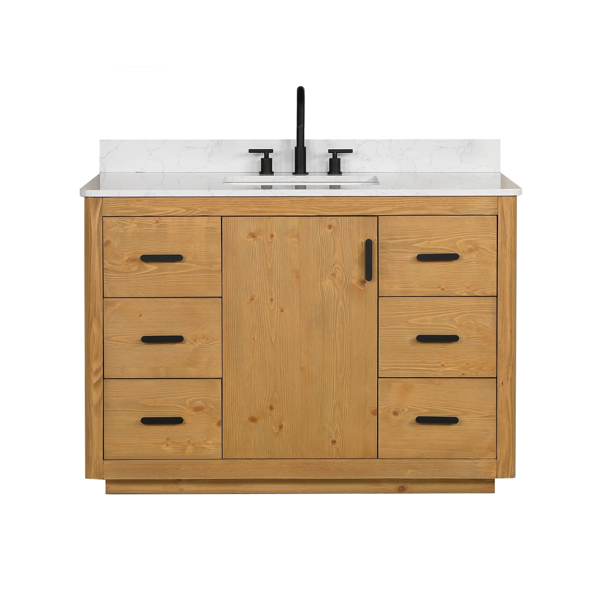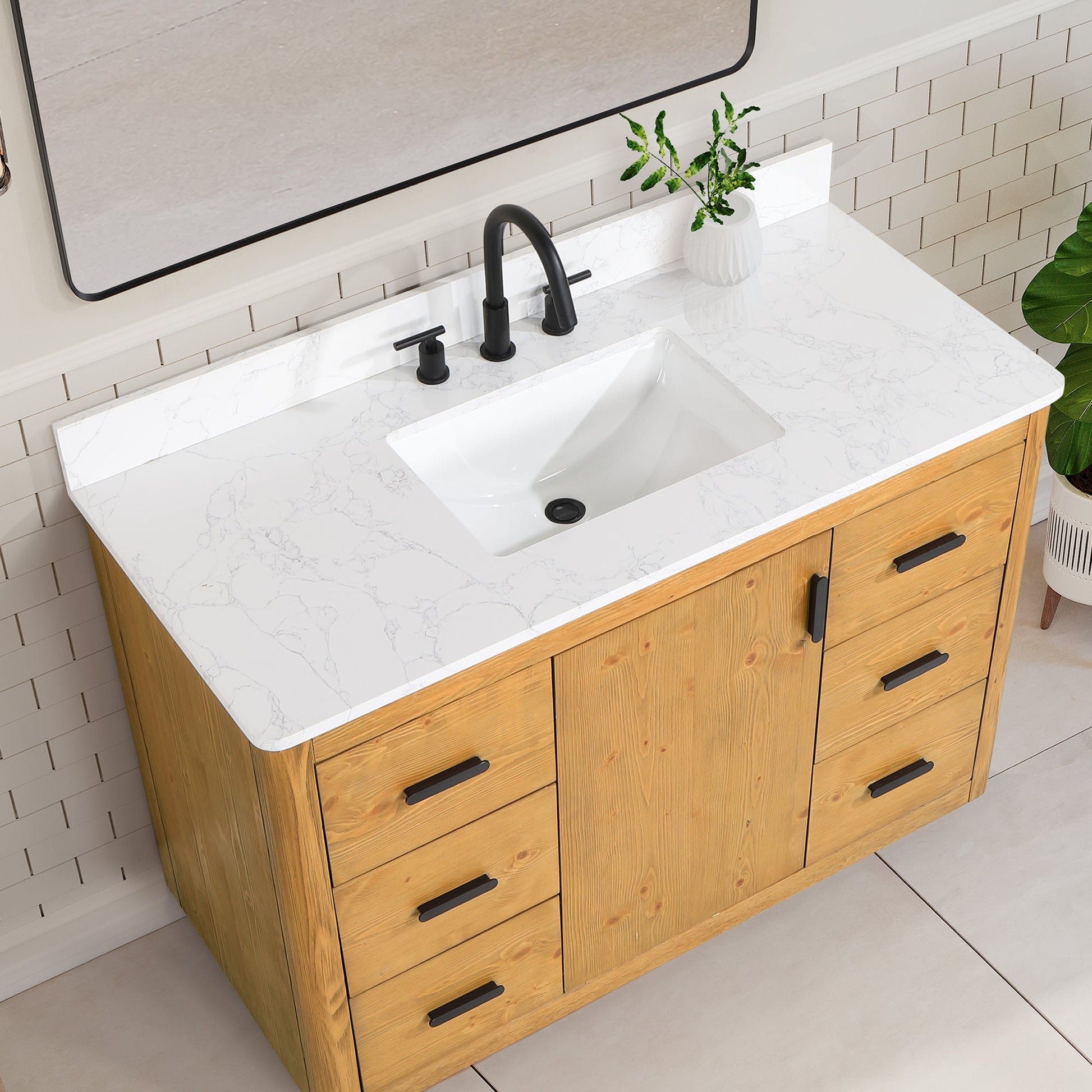 Perla 48" Single Bathroom Vanity with Grain White Composite Stone Countertop
