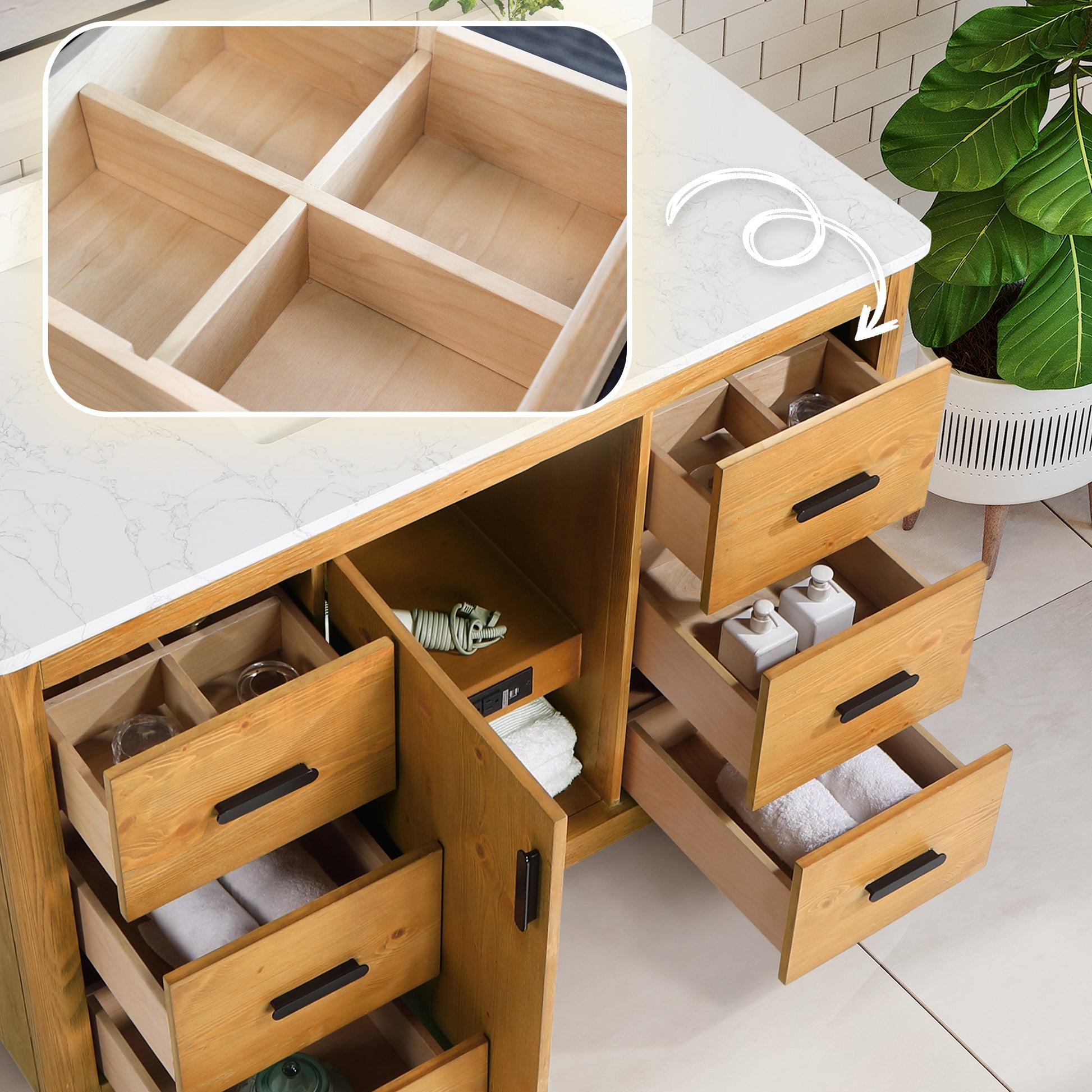 - 3 soft-closing drawers and 1 soft-closing door maximize your bathroom storage space.