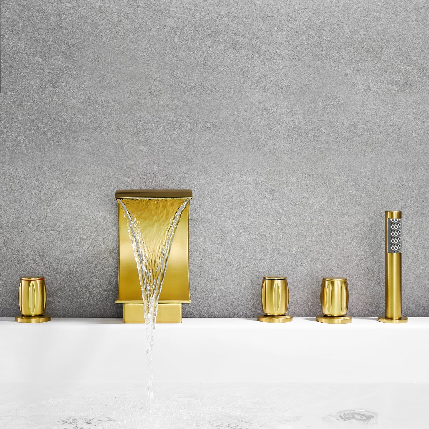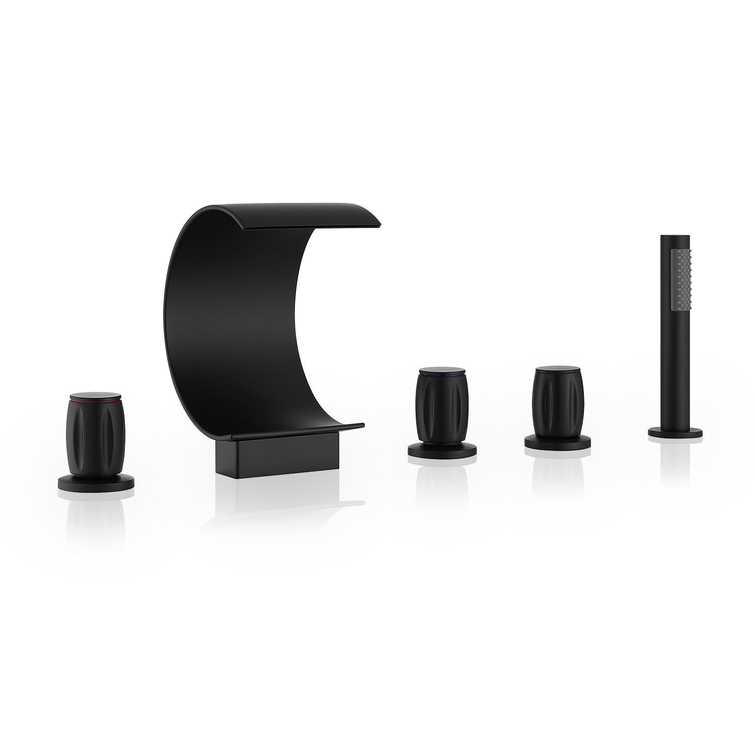 Want to make an unforgettable style statement? Our Recea Deck-Mount Bathtub Faucet will be the highlight of your modern bathroom space. Its spout features a striking arc design that sends a sheet of water cascading into your tub. This faucet has crisp edges and a clean, minimalist appearance that pairs beautifully with contemporary décor. It’s crafted of solid brass to ensure lasting great looks and stellar performance.