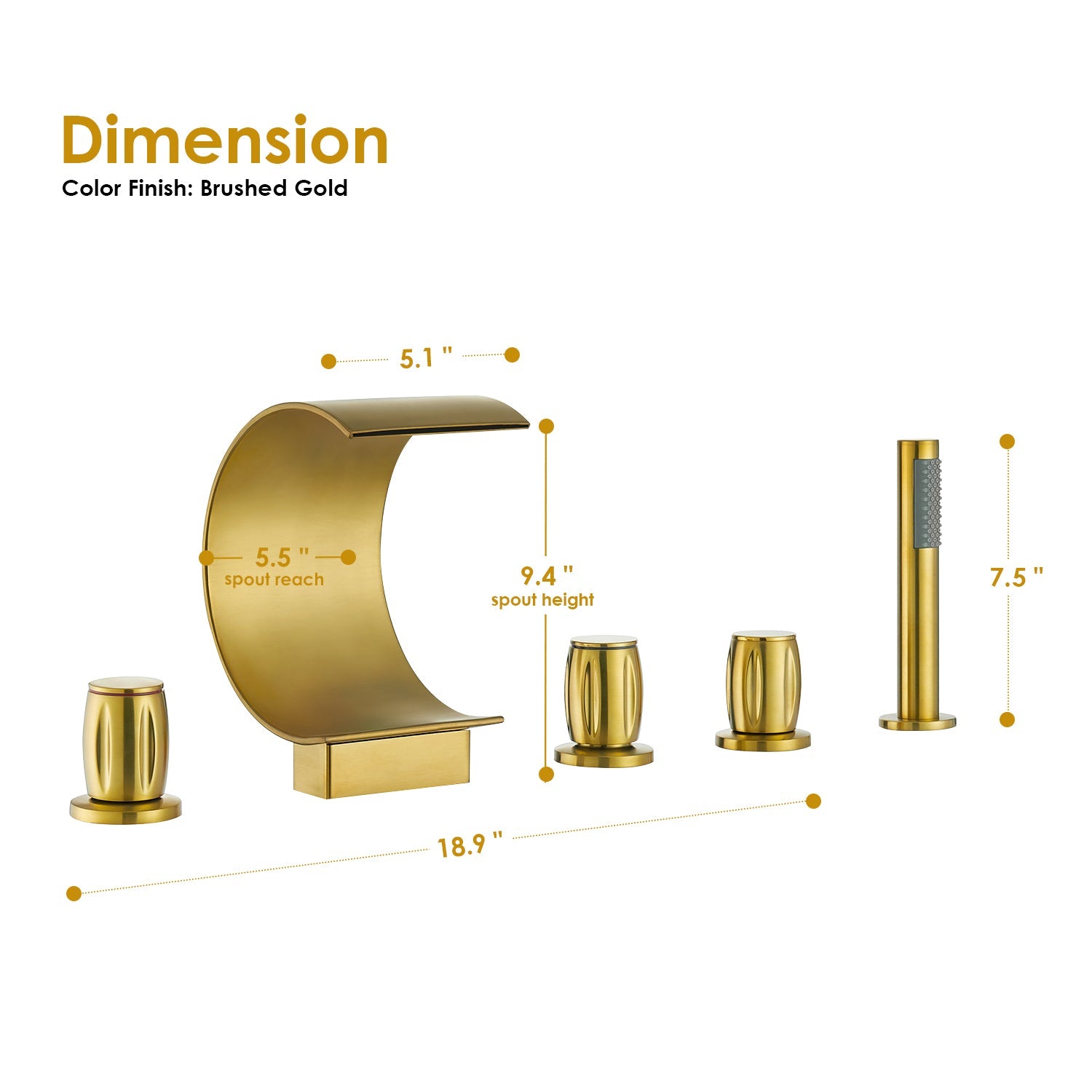 Recea Triple Handle Deck-Mount Roman Tub Faucet with Diverter and Handshower