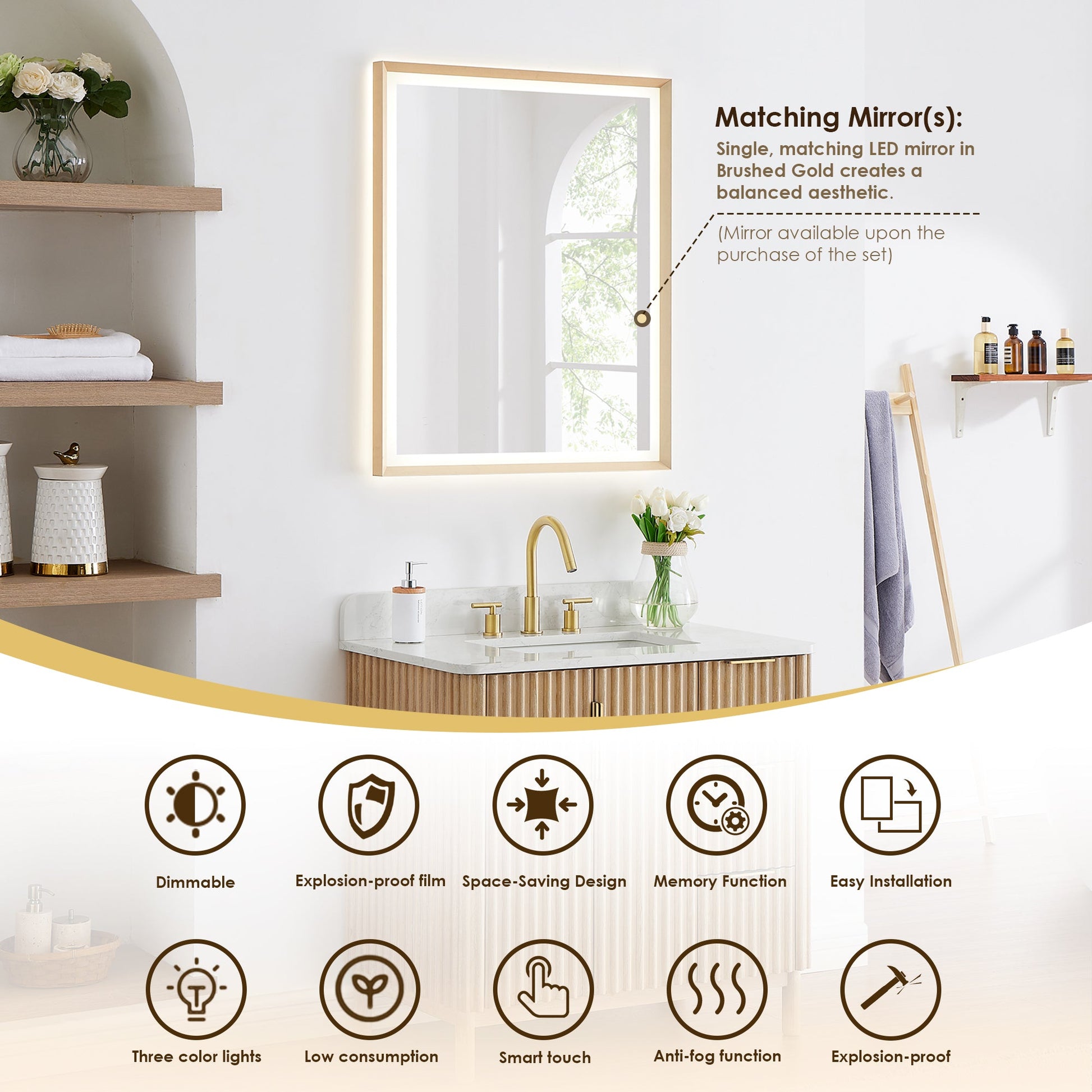 - Matching Mirror(s): Single, matching LED mirror in Brushed Gold creates a balanced aesthetic