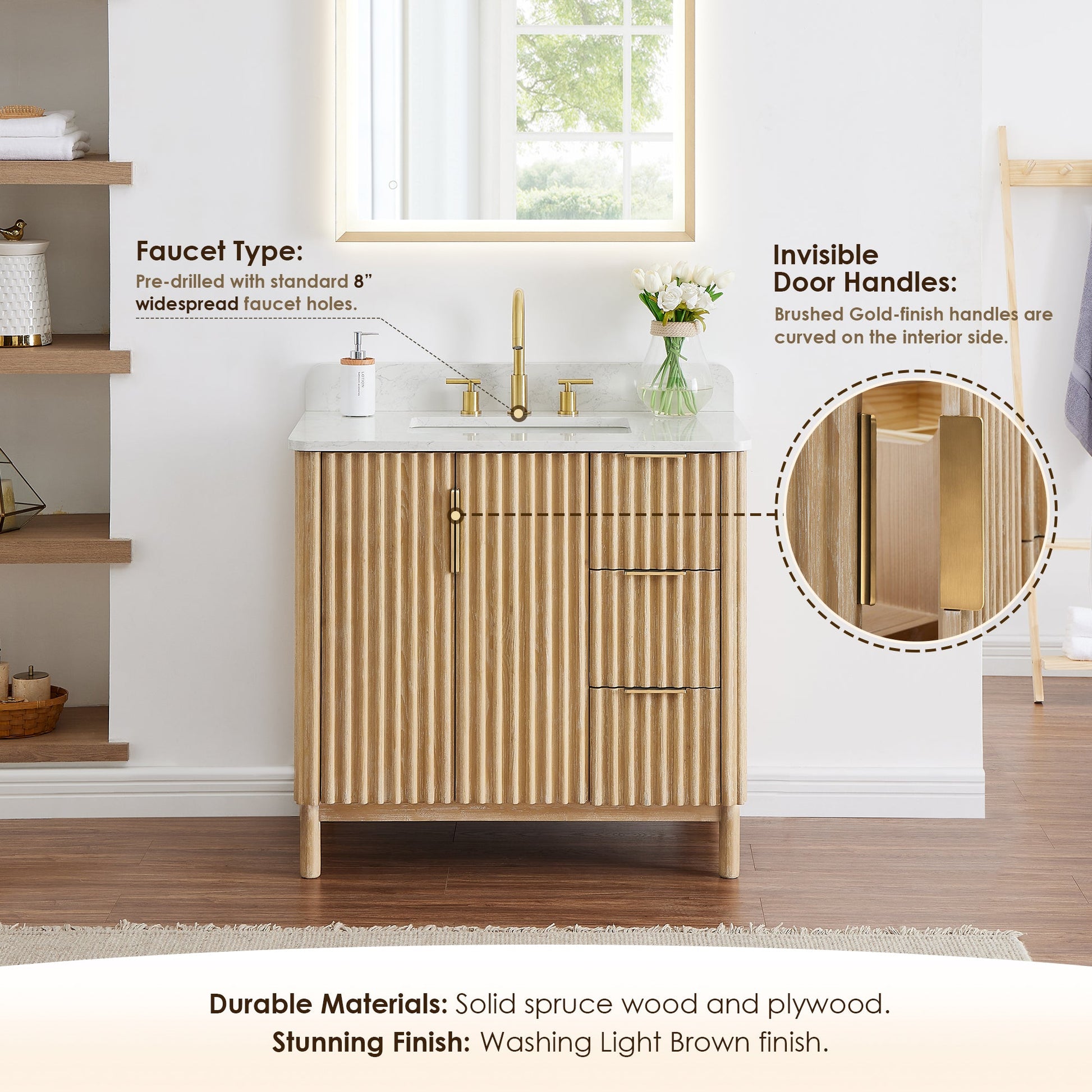 Sierra 36" Single Bathroom Vanity in Washed Light Brown with Engineered Stone Countertop